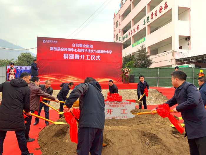 在国家“精准扶贫”政策的号召下,合信置业集团积极落实中央纪委对雷波县精准扶贫工作的倡导,助力雷波县教育扶贫。2019年12月19日上午,雷波县金沙镇中心校教学楼和马湖阳光小学两所希望小学的捐建暨开工仪式在雷波县金沙镇中心校隆重举行。