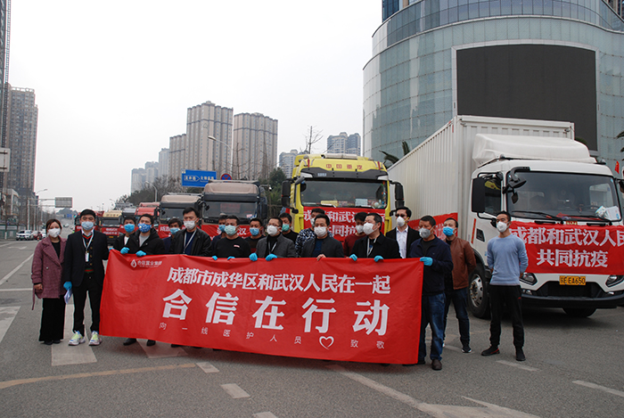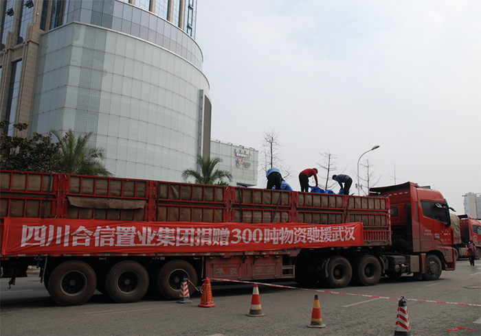 2月13日,合信置业集团驰援武汉300吨价值500万元抗疫物资的8辆运载大货车,在成都市成华区上古天地星悦广场集结,该批抗疫物质由200吨新鲜蔬菜和100吨紧缺医疗物资构成,将于2月15日抵达湖北武汉,其中100吨紧缺医疗物资将驰援武汉大学中南医院(雷神山医院)、武汉大学人民医院、武汉市中心医院、湖北省中西医结合医院、武汉市七医院、武汉市九医院、洪山区石牌岭方舱医院、武汉大学人民医院东区、武汉市普仁医院、武汉市儿童医院、湖北省妇幼保健院共11所一线抗疫医院,200吨新鲜蔬菜将由自愿者分发给武汉市民。这是合信置业集团继四川省内捐赠价值600万元抗疫物资之后,向武汉一线抗疫医院及市民进行的定向捐赠,截止目前,合信累积捐赠价值约1100万元抗疫物资。