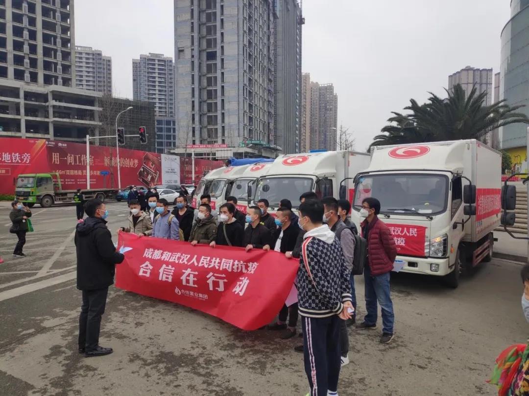 “蔬菜不够,我们来送!”“营养不足,我们来加!”继2月13日向武汉捐赠价值约500万元的爱心物资后,合信置业集团又定向捐赠给武汉社区一批肉类、蔬菜等急需物资。3月5日上午10点,17辆满载爱心的大卡车从上古天地·星悦广场出发,星夜兼程驶向武汉。据介绍,这批物资约230吨、总价值约200万元,包括12吨大米、18吨鸭子以及200余吨新鲜蔬菜。新冠疫情发生后,该集团已向四川本地和湖北武汉累计捐赠总价值约1300万元的防疫、医用、生活等各类物资。