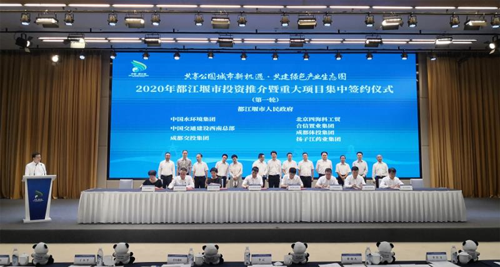 2020年9月7日,都江堰市投资推介暨重大项目集中签约仪式在成都交子国际酒店举办,包括合信文旅项目在内的19个项目签约落地,协议总投资达638亿元。据了解,此次签约19个项目涵盖高端酒店、市政建设、旅游装备、文化创意、现代农业、健康医养、体育赛事、环境保护、数据管理等多领域产业。