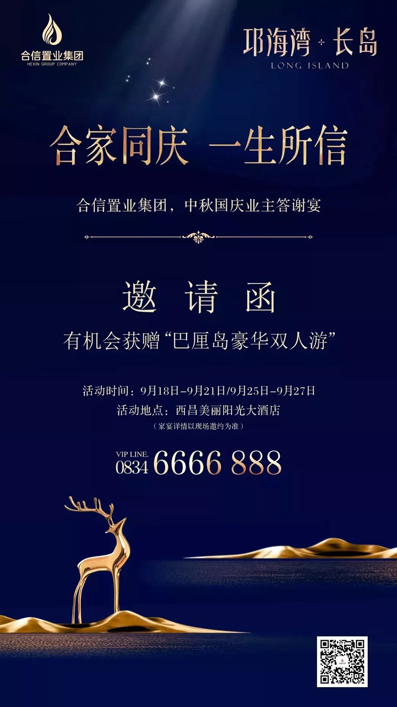 合信置业集团感恩客户厚爱,值此中秋国庆双节同庆之际,我们为您精心准备一场业主答谢宴,在九月与您来一次温情相见!